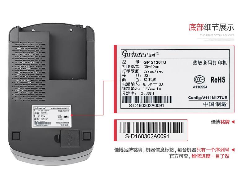 佳博GP2120TU熱敏打印機不干膠三防貼紙手機服裝吊牌貨架條碼藍牙二維碼奶茶超市面包食品價格倉庫標簽打印機